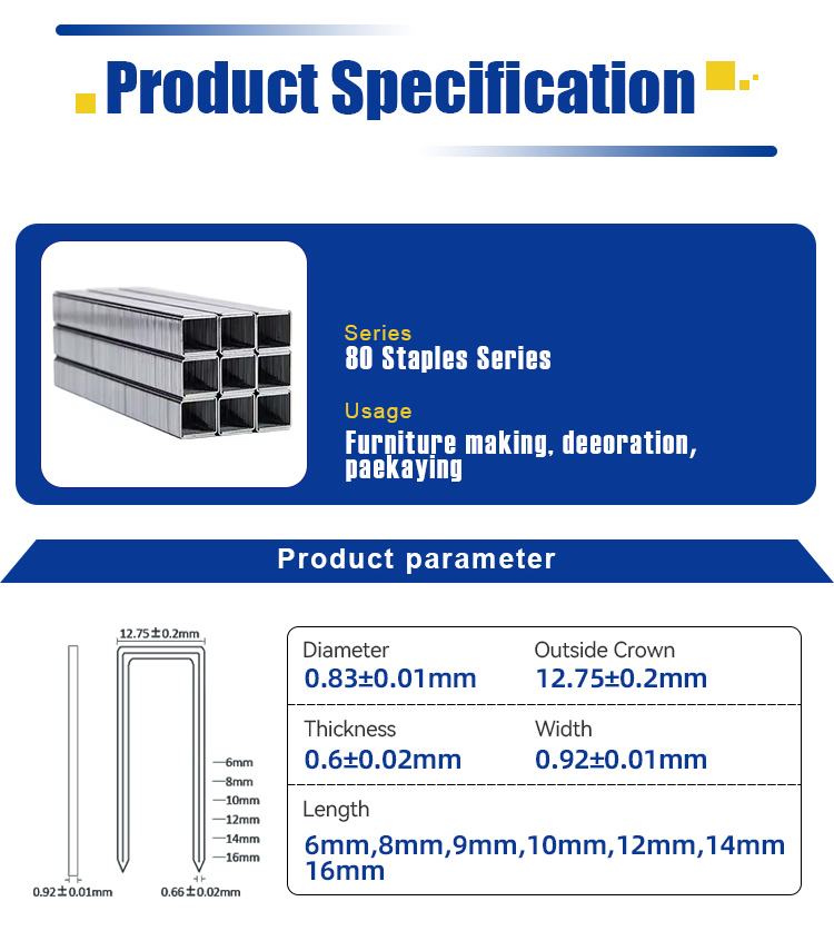 Rhinails Serie 80 Series Galvanized Steel Staples | Rango de tamaño completo (1/4 'a 3/5 ')